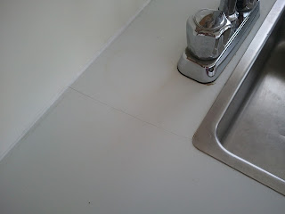 Red October is starting to show her age when I found a small crack on the countertop or could it be from all those impromptu parties of wild drinkin and snackin'? To show my artistic side, I decided to cover it up with some glass mosaic tiles. Why not play it up with some wave design? Had a vision of what I wanted and hoped that it will turn out as well as the picture in my head!